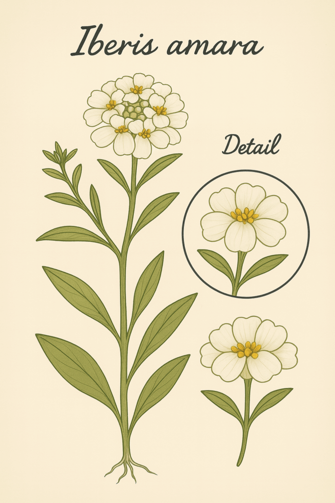 Deze plant werd al in de Middeleeuwen veelvuldig gebruikt in Europa, voornamelijk als huismiddel bij spijsverteringsproblemen zoals een trage of zwakke maagwerking. In de volksgeneeskunde stond ze bekend om haar uitgesproken bittere smaak en werd ze gewaardeerd als klassiek “maagkruid”, vaak toegediend als tinctuur of bitterextract voor of na het eten. Apothekers in de 18e en 19e eeuw namen Iberis amara op in hun formuleringen vanwege haar effect op galafscheiding en maagmotiliteit. In de 20e eeuw vond de plant opnieuw haar weg naar moderne fytotherapie, vooral in gestandaardiseerde kruidencombinaties ter verlichting van functionele maag-darmklachten, zoals indigestie, gastritis en winderigheid.
